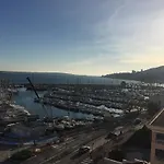 Das 25 m^2 große Apartment Ferienwohnung Amazing View Port Golfe-Juan liegt nur 9 Fußminuten vom Starnd Plages de l'Ouest entfernt und verfügt über einen Balkon und eine Sitzecke. Dieses am Strand Apartment hat eine Terrasse mit auf Blick das Meer.